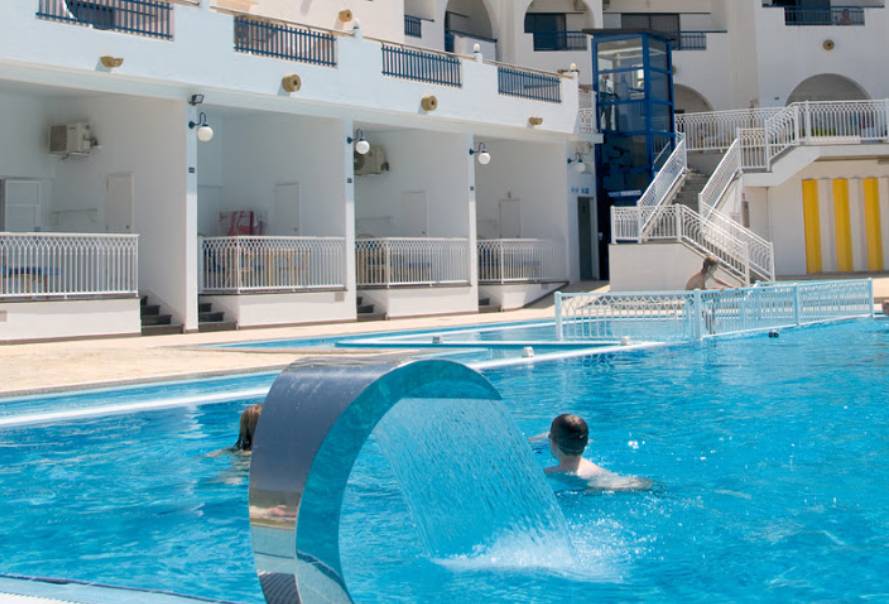 Alrededor de los apartamentos se puede disfrutar de una fantástica piscina, un bar de aperitivos (abierto en temporada alta) y una terraza para tomar el sol con tumbonas y sombrillas a disposición de nuestros huéspedes.