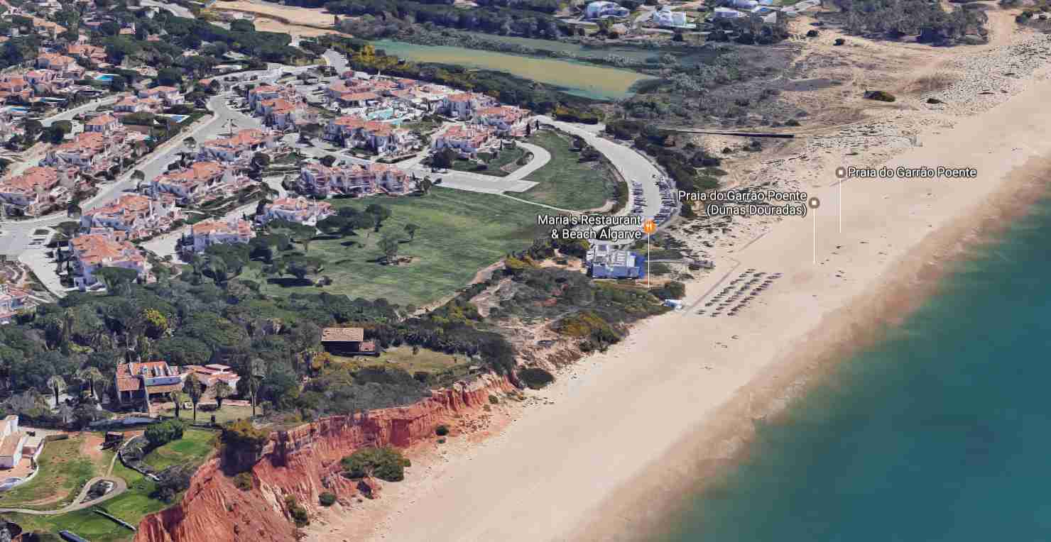 Playa de las dunas Doradas es una playa algarvense que está cerca del pueblo de Quarteira. Un elemento que nos encatará de esta playa, son los acantilados naturales que rodean la playa y que dan una gran sensacion de intimidad. En estos acantilados en las épocas frías del año, se refugian multiples aves marinas. quarteira1 El estado de natural de la playa la podriamos calificar de Semivirgen ya que aunque tiene algunos servicios básicos como algún chiringito o incluso en alguna zona encuentra muy bien conservada y alejandonos un poco de esa zona vamos a encontrar una playa virgen. Me gustaria añadir que si estás buscando una playa en la que que desaparecer, has encontrado una que puede cumplir tus expectativas pues esta playa es enorme cientos y cientos de metros de playa para disfrutar del sol y de la arena. La playa es muy ancha y extensa con una gran cantidad de arena así que no no vamos a tener problemas para poner la toalla incluso en las épocas más concurridas del verano. En las cercanias de esta playa hay campos de golf que llegan hasta la misma arena en los acantilados y es muy llamativo el verde de los greens con el dorado de la arena. Playa de las dunas Doradas tiene una excelente arena dorada clara que no se pega mucho a la piel y es muy agradable.