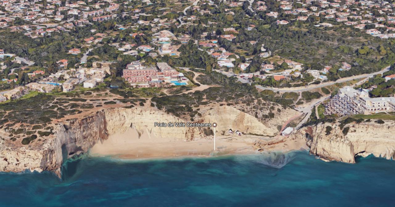 Playa de Vale Centeanes es una playa algarvense que está cerca del pueblo de Carvoeiro. El Algarve en general tiene playas en espacios naturales muy virgenes que bien por su lejania a los destinos convencionales o por su dificil acceso hay poca accion humana y son lugares muy intimos y tranquilos y generalmente si hay es un pequeño bar, pero no hay duchas ni otros servicios, Playa de Vale Centeanes es una de esas playas Virgenes que os encatará. El acceso a la playa no es sencillo y deberemos dejar el coche bastante alejado y darnos un buen paseo para llegar al mar. La ventaja de esto es que nos vamos a encontrar una playa muy tranquila casi sin nadie que nos moleste. Un elemento que nos encatará de esta playa, son los acantilados naturales que rodean la playa y que dan una gran sensacion de intimidad. En estos acantilados en las épocas frías del año, se refugian multiples aves marinas. Playa de Vale Centeanes como la mayoría de las playas del algarve, es de arena pero tiene algunas partes en las que tiene rocas, si nos bañamos cerca de ellas debemos tener cuidado pues podria haber erizos de mar que si los tocamos sin querer nos podemos pinchar o podriamos chocar con ellas si hay corrientes o oleaje.