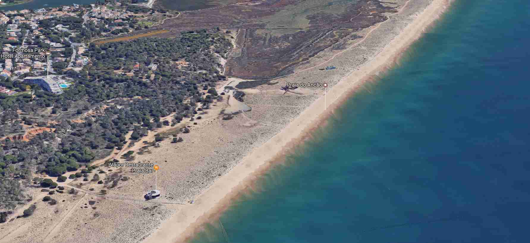 Playa do Anção es una playa algarvense que está cerca del pueblo de Quarteira. La playa de Playa do Anção es muy ancha con casi 300 metros de playa tras ella hay un sistema de dunas con especies de plantas semideserticas. Esta playa tiene buenas olas es una de las más conocidas por los surferos del Algarve , encontrando en el pueblo algunas escuelas de surf. El estado de natural de la playa la podriamos calificar de Semivirgen ya que aunque tiene algunos servicios básicos como algún chiringito o incluso en alguna zona encuentra muy bien conservada y alejandonos un poco de esa zona vamos a encontrar una playa virgen. El Algarve en general tiene playas en espacios naturales muy virgenes que bien por su lejania a los destinos convencionales o por su dificil acceso hay poca accion humana y son lugares muy intimos y tranquilos y generalmente si hay es un pequeño bar, pero no hay duchas ni otros servicios, Playa do Anção es una de esas playas Virgenes que os encatará. Playa do Anção tiene una excelente arena dorada clara que no se pega mucho a la piel y es muy agradable.
