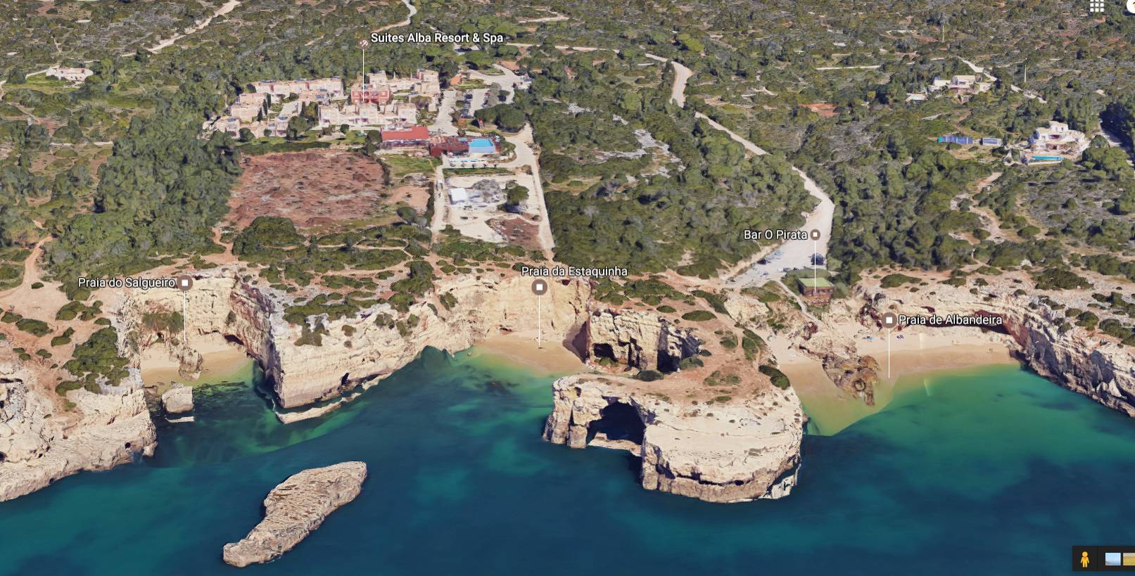 Playa do Estaquinha es una playa algarvense que está cerca del pueblo de Porches. El Algarve en general tiene playas en espacios naturales muy virgenes que bien por su lejania a los destinos convencionales o por su dificil acceso hay poca accion humana y son lugares muy intimos y tranquilos y generalmente si hay es un pequeño bar, pero no hay duchas ni otros servicios, Playa do Estaquinha es una de esas playas Virgenes que os encatará. El acceso a la playa no es sencillo y deberemos dejar el coche bastante alejado y darnos un buen paseo para llegar al mar. La ventaja de esto es que nos vamos a encontrar una playa muy tranquila casi sin nadie que nos moleste. Playa do Estaquinha es una playa bastante pequeña, casi una cala por lo que en verano puede estar bastante saturada. Frente a Playa do Estaquinha, encotramos algunas rocas que sobresalen del mar y que dan un precioso contraste al color turquesa del mar algarvense. Un elemento que nos encatará de esta playa, son los acantilados naturales que rodean la playa y que dan una gran sensacion de intimidad. En estos acantilados en las épocas frías del año, se refugian multiples aves marinas. La playa es bastante estrecha por lo que cuando sube la marea puede incluso llegar a desaparecer bajo las olas.