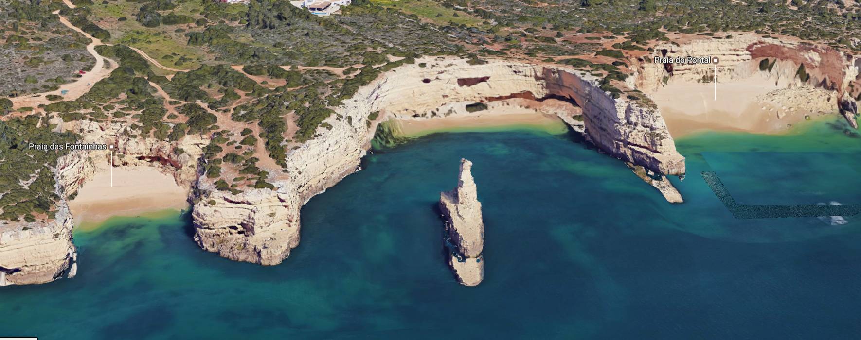 Playa do Fontainhas es una playa algarvense que está cerca del pueblo de Porches. El Algarve en general tiene playas en espacios naturales muy virgenes que bien por su lejania a los destinos convencionales o por su dificil acceso hay poca accion humana y son lugares muy intimos y tranquilos y generalmente si hay es un pequeño bar, pero no hay duchas ni otros servicios, Playa do Fontainhas es una de esas playas Virgenes que os encatará. Playa do Fontainhas es una playa bastante pequeña, casi una cala por lo que en verano puede estar bastante saturada. Frente a Playa do Fontainhas, encotramos algunas rocas que sobresalen del mar y que dan un precioso contraste al color turquesa del mar algarvense. Un elemento que nos encatará de esta playa, son los acantilados naturales que rodean la playa y que dan una gran sensacion de intimidad. En estos acantilados en las épocas frías del año, se refugian multiples aves marinas. El acceso a la playa no es sencillo y deberemos dejar el coche bastante alejado y darnos un buen paseo para llegar al mar. La ventaja de esto es que nos vamos a encontrar una playa muy tranquila casi sin nadie que nos moleste. La playa es bastante estrecha por lo que cuando sube la marea puede incluso llegar a desaparecer bajo las olas.