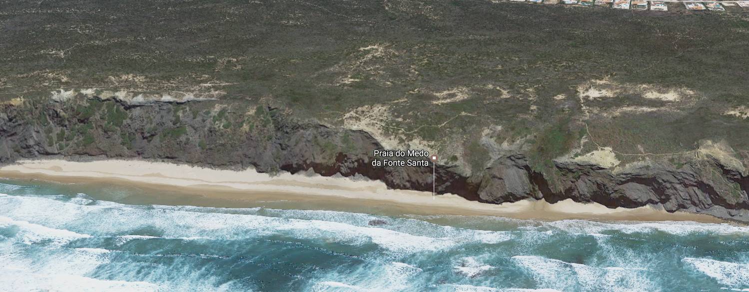 Playa do Medo da Fonte Santa es una playa algarvense que está cerca del pueblo de Aljezur. Bajo unos grandes acantilados Negros tipicos de esta parte de la costa del algarve encontramos la Playa do Medo da Fonte Santa . La Playa do Medo da Fonte Santa está cerca de la pequeña barriada de Monte Clérigo . El acceso es dificil la mejor forma de llegar es Dejar el coche en Monte Clérigo e ir caminando por la orilla hasta ella. Esta playa esta en estado salvaje y no encontramos servicios en ella como duchas o chiringitos lo cual es ideal para aquellos que buscan tranquilidad. La Playa do Medo da Fonte Santa es una playa del atlantico con unos 300 metros de largo y unos 20 metros de playa de ancho .