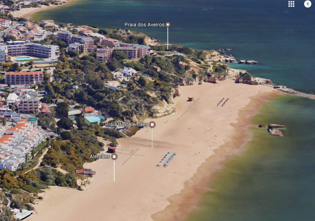 Playa dos alemanes es una playa algarvense que está cerca del pueblo de Albufeira. Un elemento que nos encatará de esta playa, son los acantilados naturales que rodean la playa y que dan una gran sensacion de intimidad. En estos acantilados en las épocas frías del año, se refugian multiples aves marinas. Esta playa tiene buenas olas es una de las más conocidas por los surferos del Algarve , encontrando en el pueblo algunas escuelas de surf. Las playas de portugal están muy bien conservadas, incluso las playas urbanas como Playa dos alemanes, esto tiene la ventaja de que vamos a encontrar muy buenos servicios como chiringuitos, duchas, cambiadores, alquiler de hamacas y todo lo que podemos necesitar para pasar un dia genial de playa, el inconveniente es que si vamos en verano quizas este demasiada llena. El acceso a la playa es bastante sencillo con aparcamientos cercanos. Playa dos alemanes tiene una excelente arena dorada clara que no se pega mucho a la piel y es muy agradable. La playa es muy ancha y extensa con una gran cantidad de arena así que no no vamos a tener problemas para poner la toalla incluso en las épocas más concurridas del verano. Me gustaria añadir que si estás buscando una playa en la que que desaparecer, has encontrado una que puede cumplir tus expectativas pues esta playa es enorme cientos y cientos de metros de playa para disfrutar del sol y de la arena.