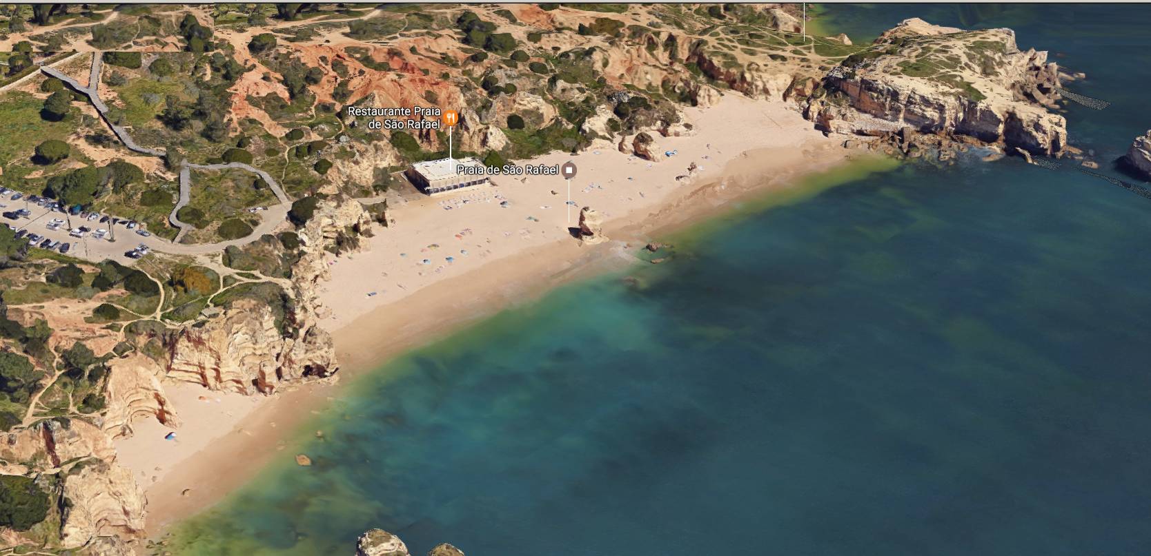 Playa São Rafael es una playa algarvense que está cerca del pueblo de Albufeira. Las playas de portugal están muy bien conservadas, incluso las playas urbanas como Playa São Rafael, esto tiene la ventaja de que vamos a encontrar muy buenos servicios como chiringuitos, duchas, cambiadores, alquiler de hamacas y todo lo que podemos necesitar para pasar un dia genial de playa, el inconveniente es que si vamos en verano quizas este demasiada llena. Un elemento que nos encatará de esta playa, son los acantilados naturales que rodean la playa y que dan una gran sensacion de intimidad. En estos acantilados en las épocas frías del año, se refugian multiples aves marinas. El acceso a la playa es bastante sencillo con aparcamientos cercanos. Playa São Rafael tiene una excelente arena dorada clara que no se pega mucho a la piel y es muy agradable. Playa São Rafael es una playa bastante pequeña, casi una cala por lo que en verano puede estar bastante saturada. La playa es muy ancha y extensa con una gran cantidad de arena así que no no vamos a tener problemas para poner la toalla incluso en las épocas más concurridas del verano. Playa São Rafael como la mayoría de las playas del algarve, es de arena pero tiene algunas partes en las que tiene rocas, si nos bañamos cerca de ellas debemos tener cuidado pues podria haber erizos de mar que si los tocamos sin querer nos podemos pinchar o podriamos chocar con ellas si hay corrientes o oleaje.